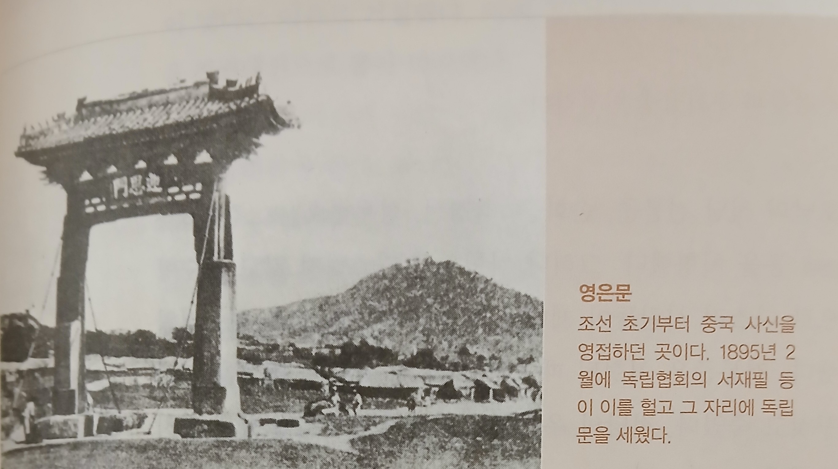영은문(迎恩門)을 헐고 삼전도비(三田渡碑)를 쓰러뜨렸다. 영은문은 서울 서대문 밖 몇 리 되는 곳에 있었는데, 명나라 때는 연조문(延詔門)이라 부르던 것을 *순치(順治) 이후에 영은문으로 개칭했다. 그것은 중국의 조사(조사)를 맞이하던 곳이었다.